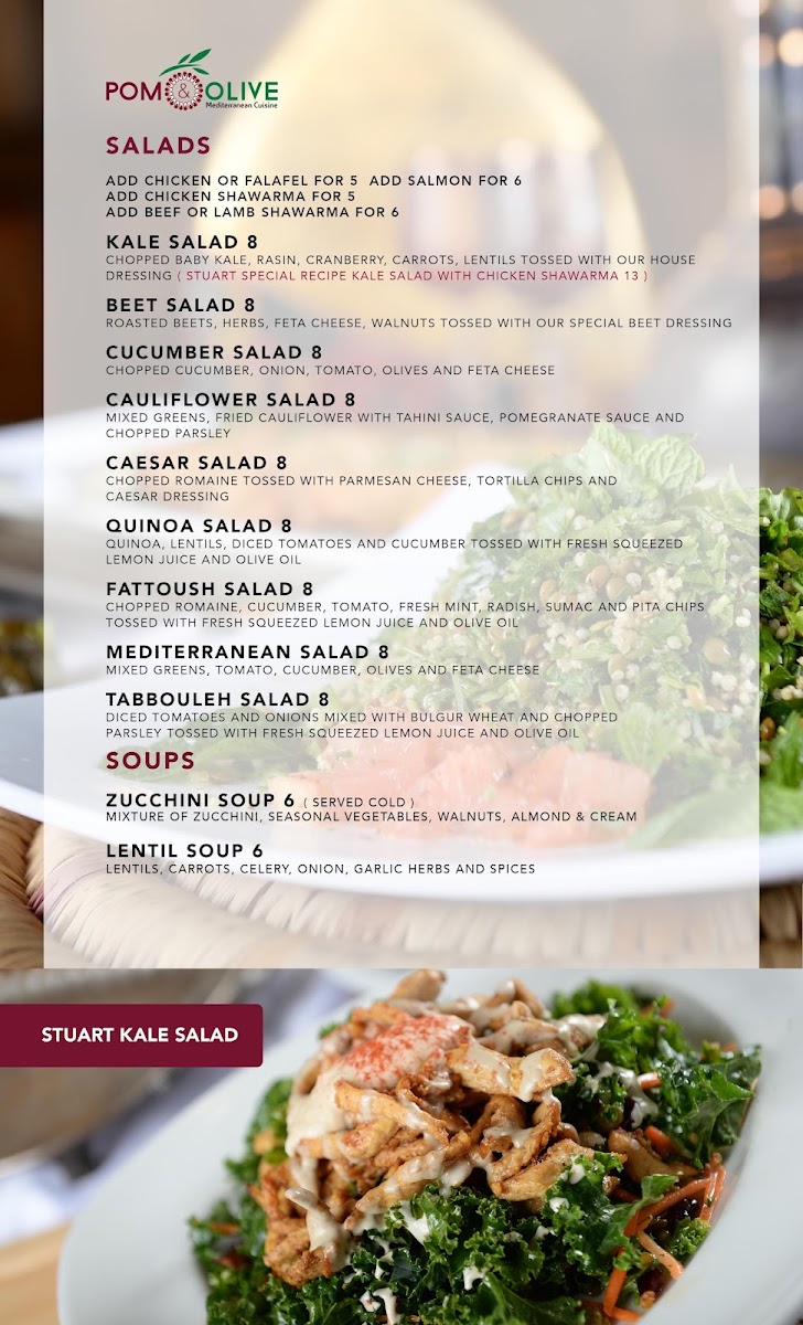 When you step into Pom & Olive, located at 325 Old Newport Blvd in Newport Beach, CA, you're in for a treat that's as fresh and inviting as the ocean breeze. The Pom & Olive Menu offers a unique blend of Mediterranean flavors with a modern twist. Whether you're in the mood for light, crisp salads, hearty entrees, or shareable plates, each dish is crafted with the finest ingredients. The menu brings a variety of options, from rich, flavorful pastas to savory grilled meats, and everything in between. You’ll find vibrant seasonal ingredients paired with bold spices, creating a dining experience that’s both familiar and new. If you’re a fan of delicious, wholesome food with a touch of creativity, Pom & Olive is sure to leave you coming back for more.
